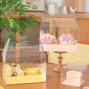 Hộp bánh kem trong suốt được sản xuất từ chất liệu nhựa PET trong suốt có phủ màng chống xước