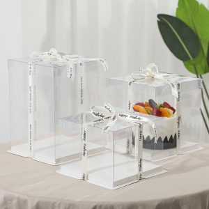 Hộp bánh kem nhựa trong hình vuông loại 2 chi tiết hoặc 3 chi tiết tùy chọn